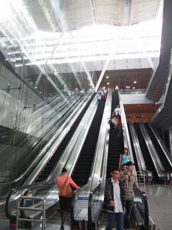 沿著指標 走下這個長長的手扶梯就是SMRT了